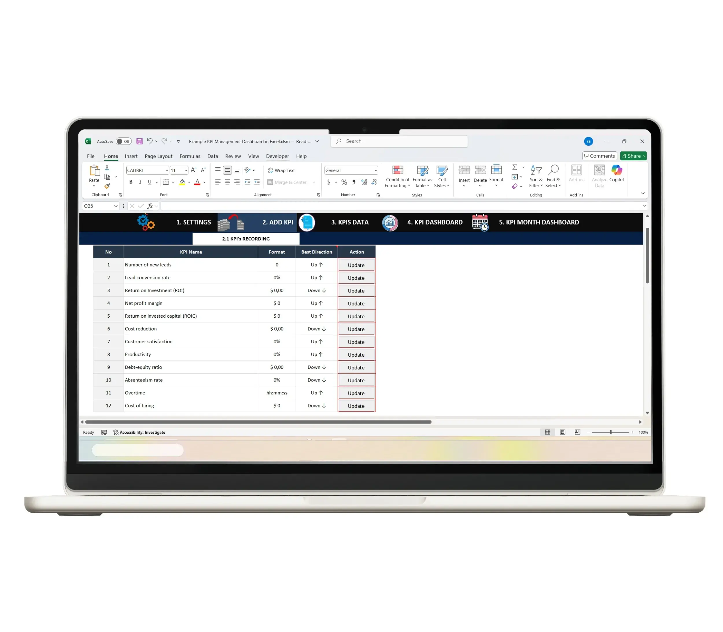 - Customizable KPI setup with up to 12 indicators.