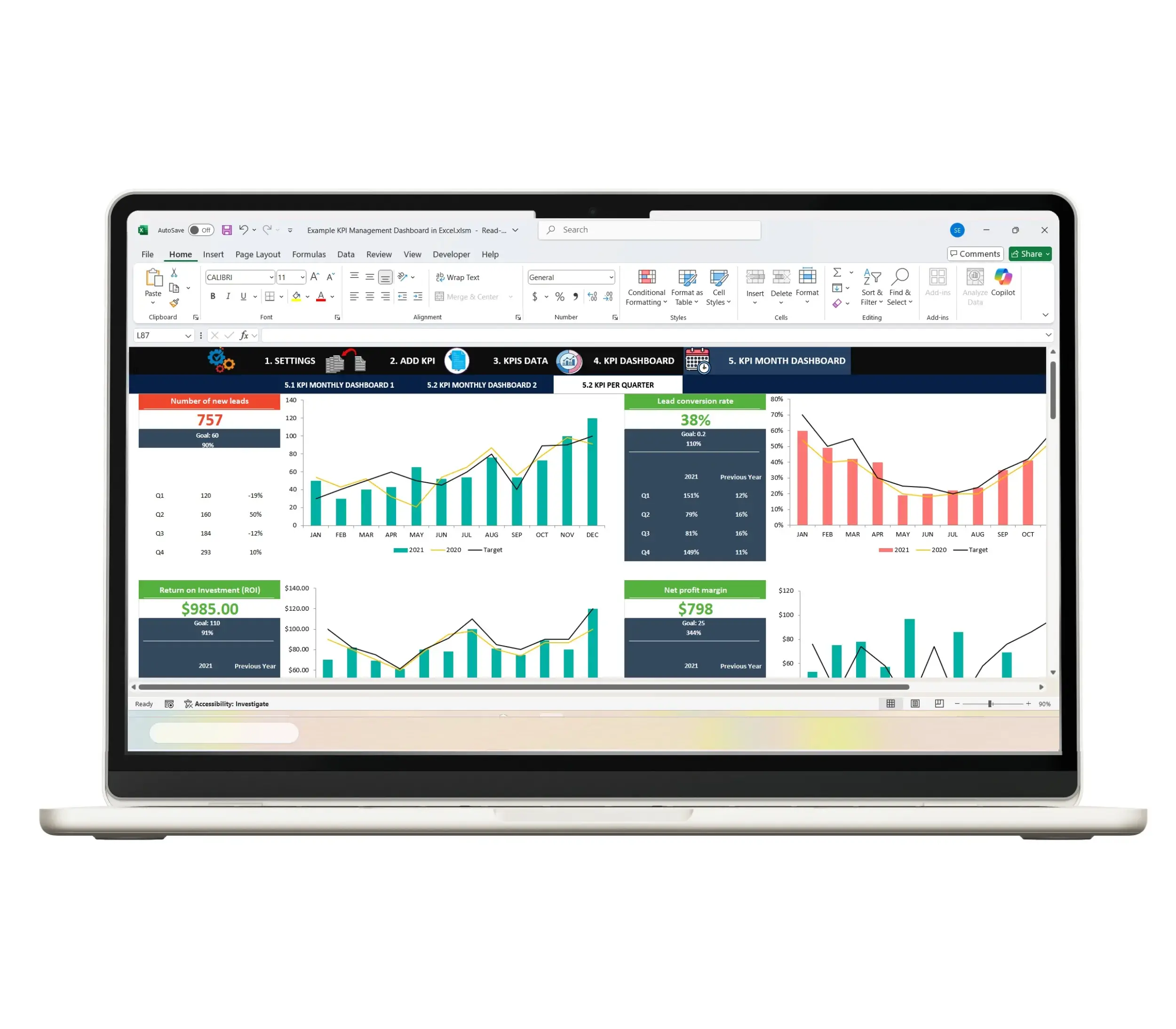 KPI Management Dashboard Excel